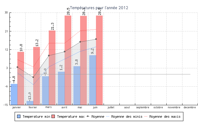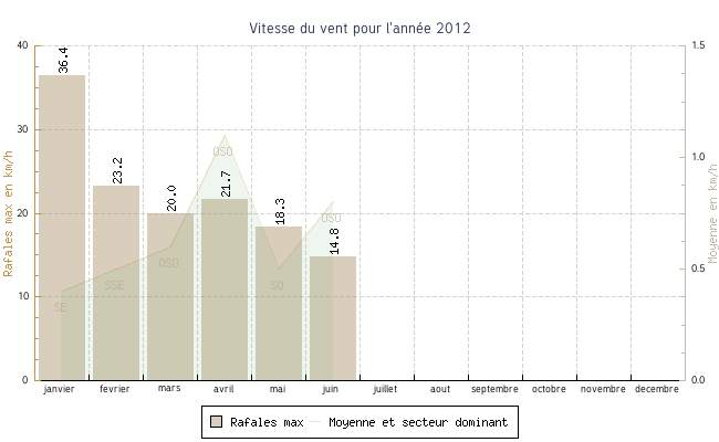 | juin | 9.2 °C | 13.3 °C | 28.5 °C | 21.8 °C | 17.1 °C | 0.8 km/h | 14.8 km/h | OSO |
