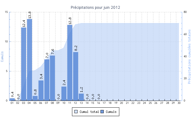 | 13 | 11.4 °C | 16.7 °C | 13.8 °C | 0.6 km/h (10.4 km/h) | OSO |
