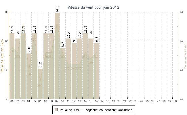 | 05 | 12.3 °C | 21.3 °C | 16.7 °C | 1.1 km/h (11.3 km/h) | OSO |